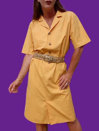 Robe vintage Candice - Chemise jaune en coton. Taille L, 40, 42. Made in Italy.