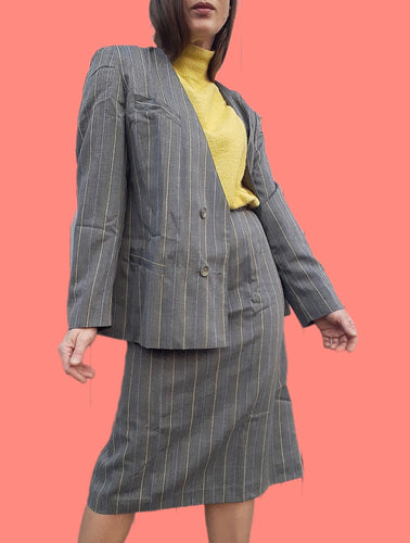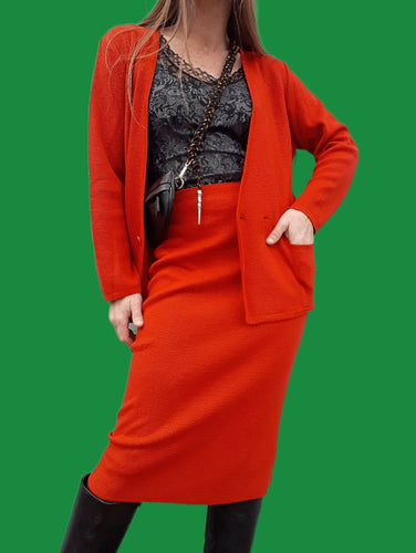 Ensemble vintage Charlotte - Jupe droite & Gilet en laine vierge. Taille L, 40, 42. Fabriqué en France