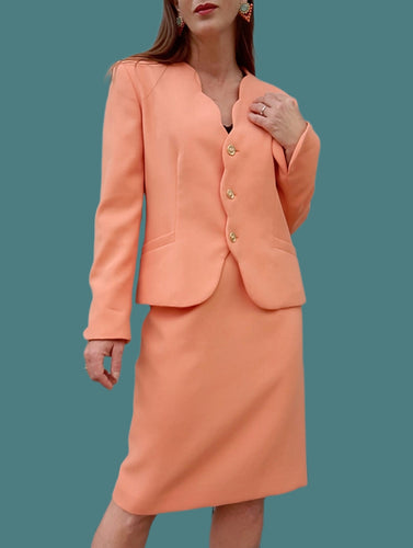 Ensemble vintage Amélie - Blazer et jupe crayon Corail. Taille S, 36, 38. Weinberg. Made in France.