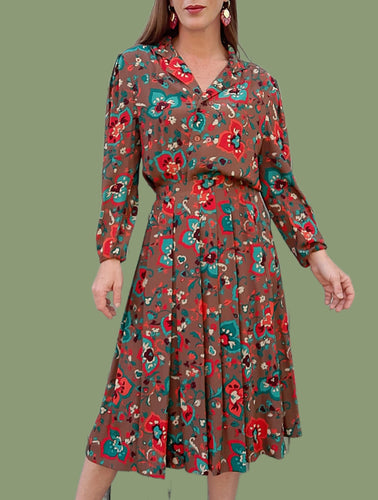 Ensemble vintage Leslee - Veste fine et robe fleurie. Taille M, 38, 40