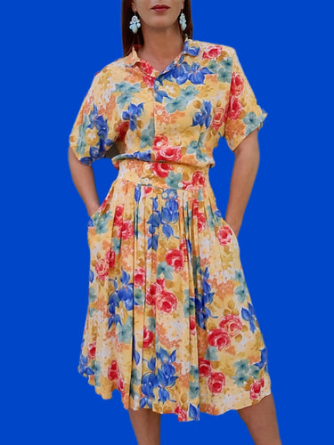 Ensemble vintage Maggie - Jupe & haut fleuri. Taille M, 38, 40. Carole Richard.