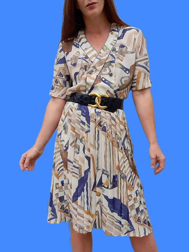 Ensemble vintage Charlène - Chemisier et jupe plissée. Abstrait. Taille XL, 42, 44. Made in France