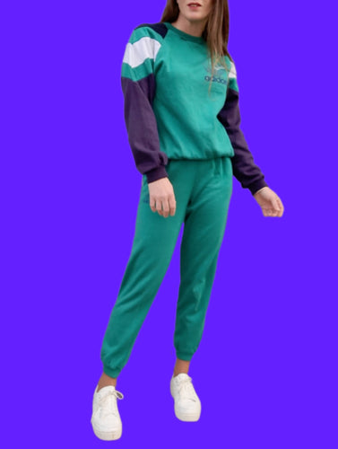 Survêtement vintage Floria - Sweat-shirt et jogging Adidas. Vert et violet. Taille S, 36, 38.