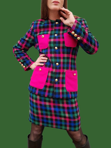 Ensemble vintage Amelle - veste et jupe crayon colorés. Taille M, 38, 40. Donna Di Cuori