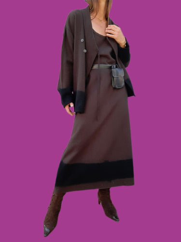 Ensemble vintage Laly - Veste & robe longue effet tie-dye en laine. Taille XL, 42, 44