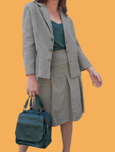 Ensemble vintage Maria - Imprimé chevrons & pieds-de-poule. Taille L, 40, 42. Fabriqué en France.