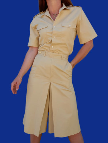 Ensemble vintage Mendy - Cacharel. Jupe culotte et chemisier jaune pâle. Taille S, 36, 38.