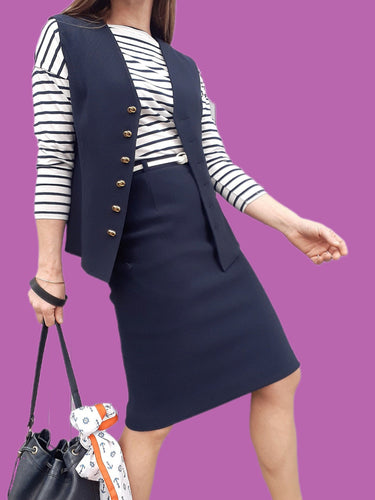 Ensemble vintage Raphaëlle - Tissu côtelé marine. Taille S, 36, 38. Christian Marry. Fabriqué en France