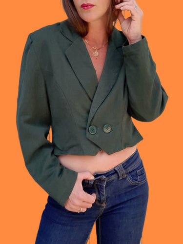 Veste vintage Agathe - Cropped vert sapin. Taille M, 38, 40. Made in France