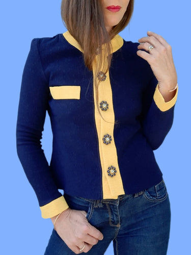 Veste vintage Charlie - Color block bleu et jaune. Taille S, 36, 38. Made in France.