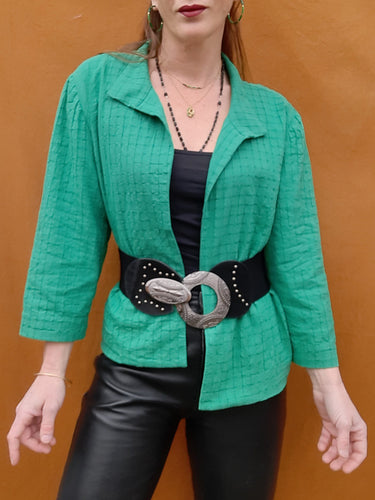 Veste fine "Seconde" Cassy - Coton vert à carreaux ajourés. Taille L, 40, 42