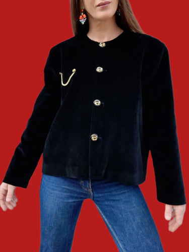 Veste vintage Suzie - Velours noir et chaîne dorée. Taille L, 40, 42. Made in France