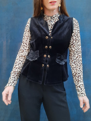 Veston vintage Sophia - Velours noir et double boutonnage. Taille M, 38, 40. Made in France