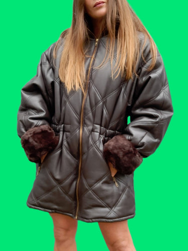Manteau matelassé Cindy - Fourrure synthétique marron. Taille XL, 42, 44