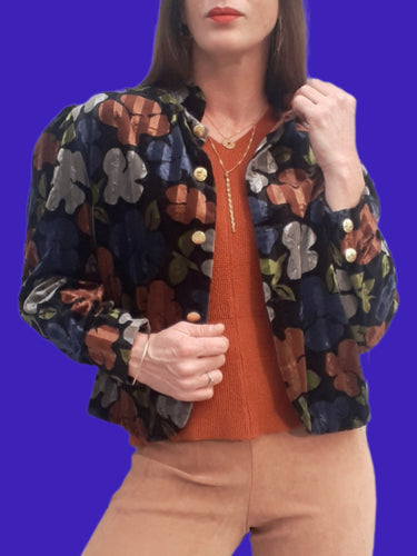 Veste vintage Amandine - Panne de velours rayé et fleuri. Fabriqué en France. Taille L, 40, 42
