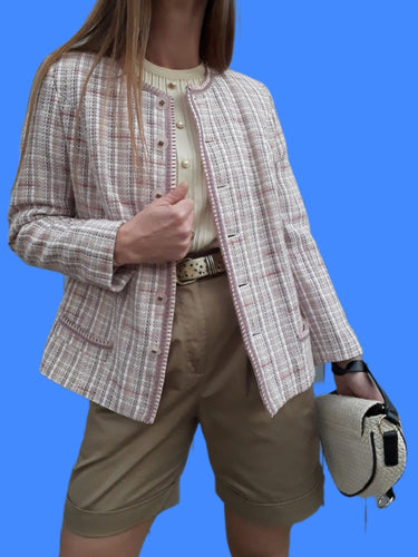 Veste vintage Carla - Tweed rose et lilas. Taille M, 36, 38