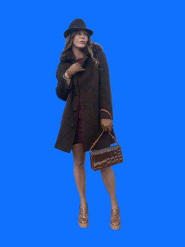 Manteau vintage Lynn - Coupe évasée, couleur chocolat. Taille S ou 36 38