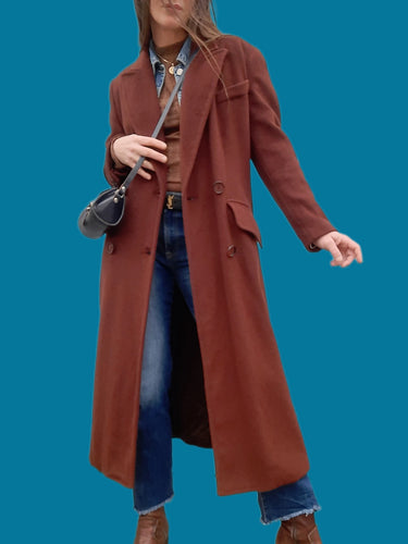 Manteau vintage Meredith - En laine et cachemire marron chocolat. Taille M, 38, 40. Franck et Fils.