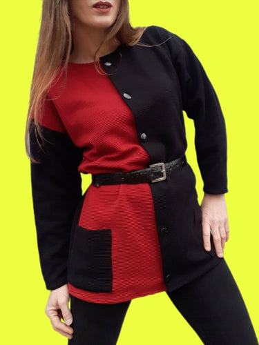 Cardigan vintage Maddie - Color block. Taille M, 36 38. Fabriqué en France