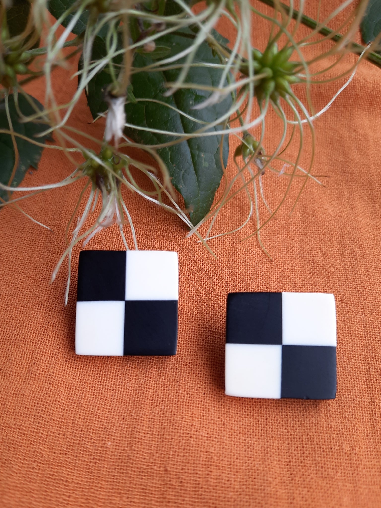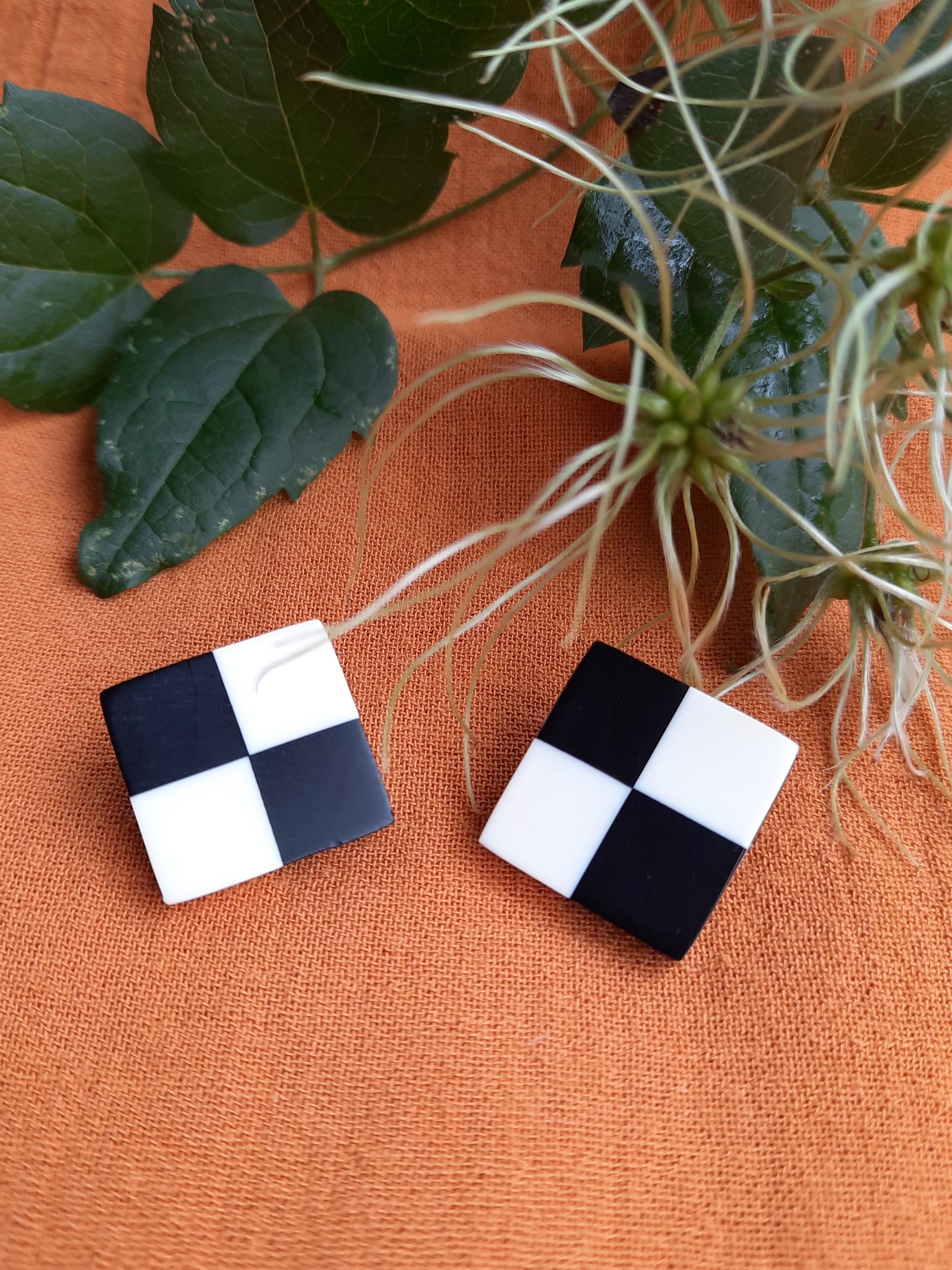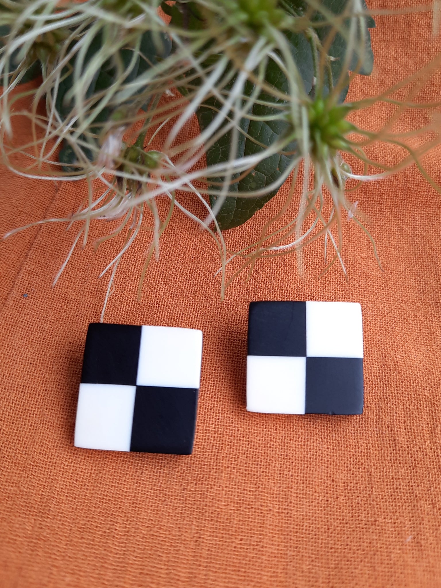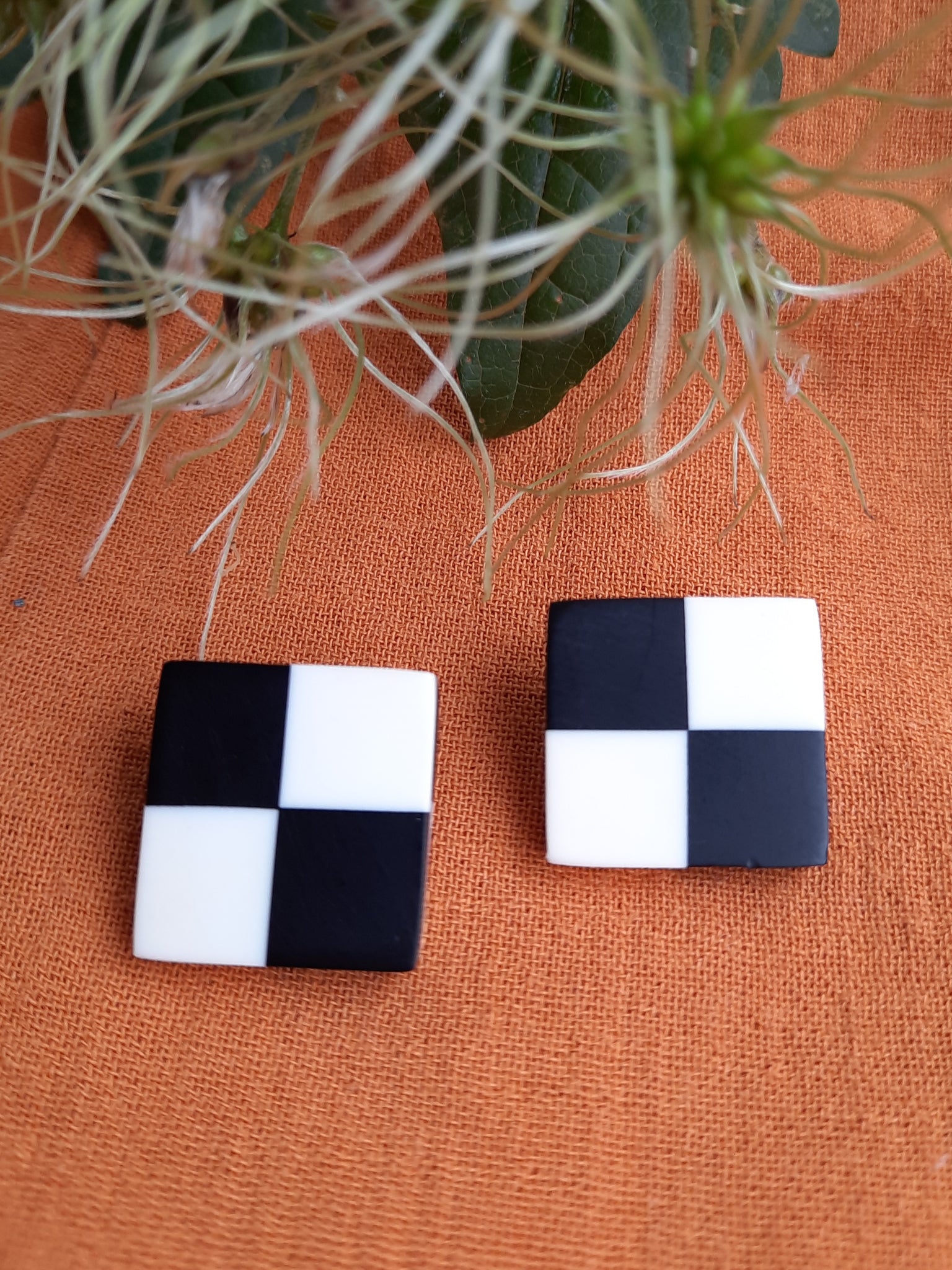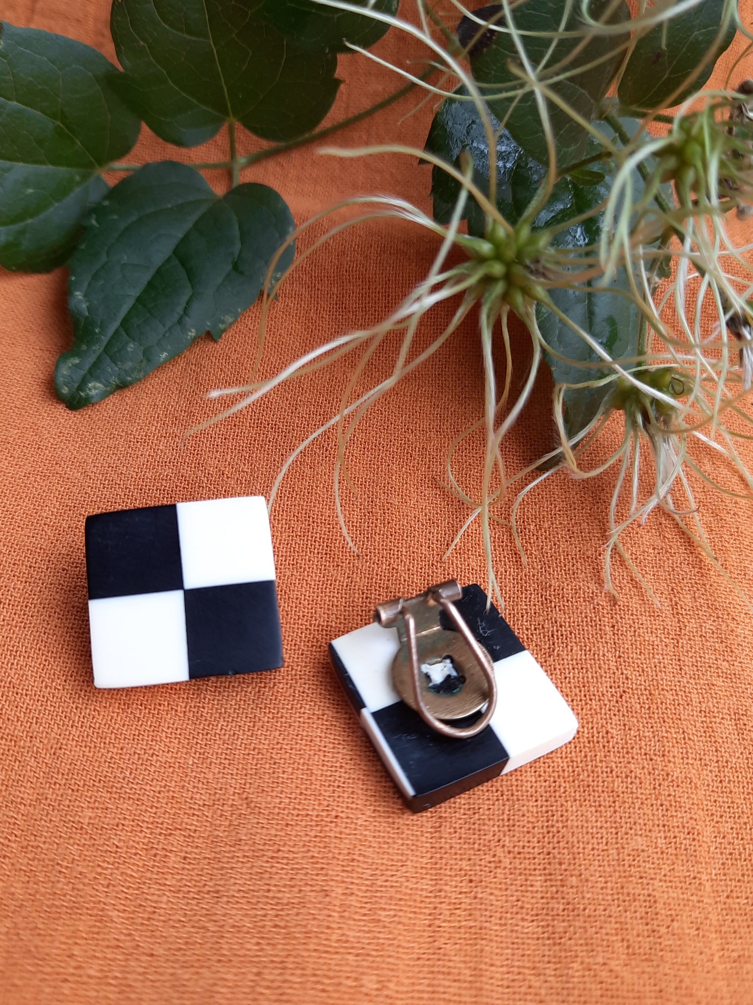 Cette paire de boucles à clip carrée en Damier bicolore est le it-bijou parfait pour attirer les regards, habiller un look et sublimer un visage.